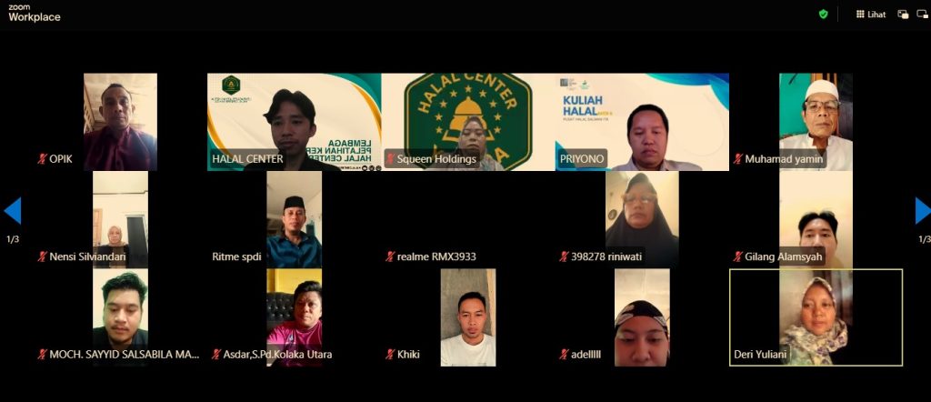 Lembaga Pendamping Proses Produk Halal (LP3H) dari Halal Center Yahida menyelenggarakan kegiatan Pembekalan Pendamping Proses Produk Halal (PPH) secara daring melalui Zoom Meeting pada Sabtu, 14 Maret 2026 pukul 13.00 WIB. Kegiatan ini diikuti oleh para pendamping halal dari berbagai daerah yang tergabung dalam jaringan pendamping Halal Center Yahida.